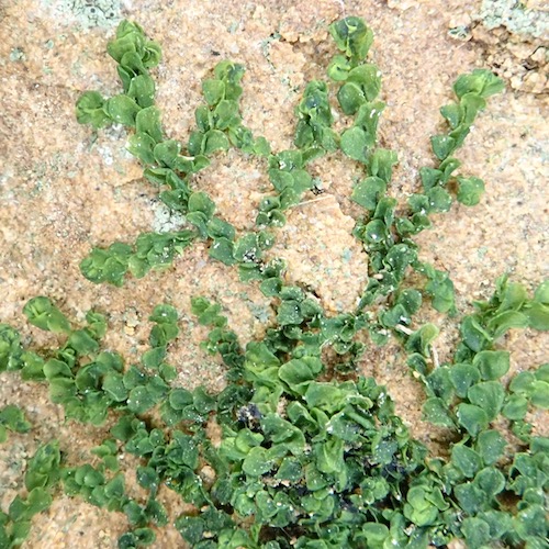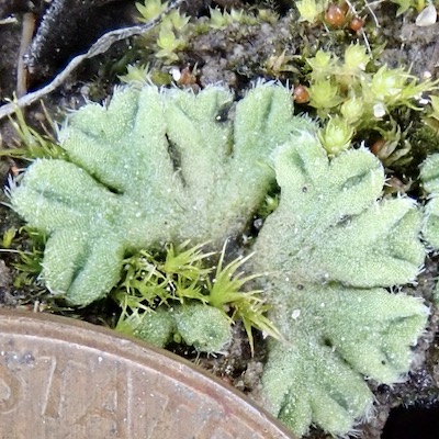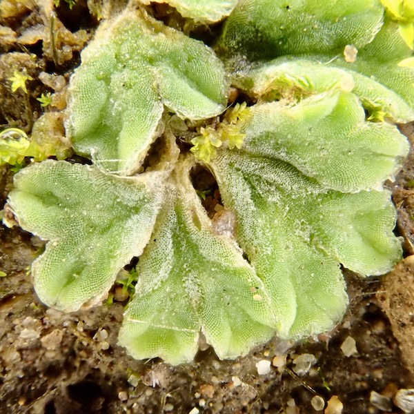 Simple thallose liverworts have a body, or thallus, which is uniform throughout, hence the simplicity. Our single local representative of the simple thallose liverworts has a thinner, more delicate appearance than our complex thallose liverworts.