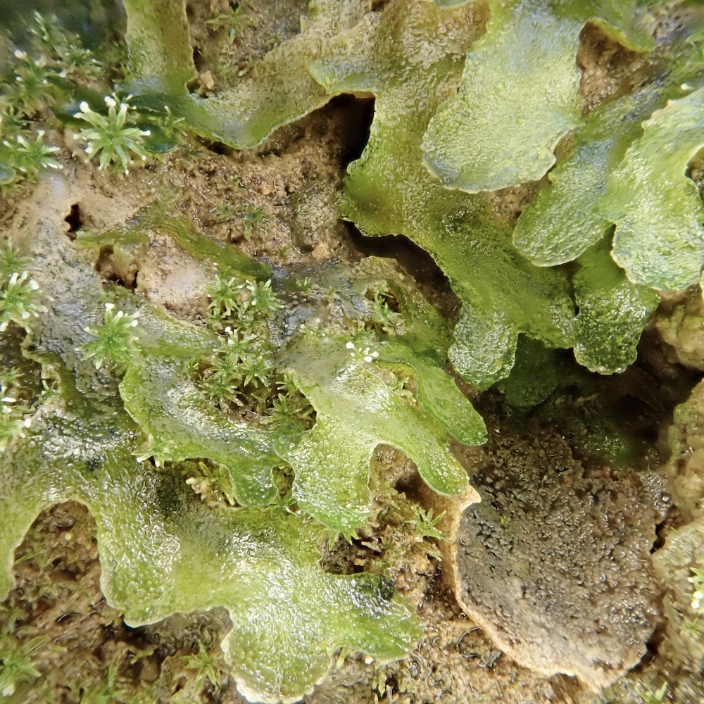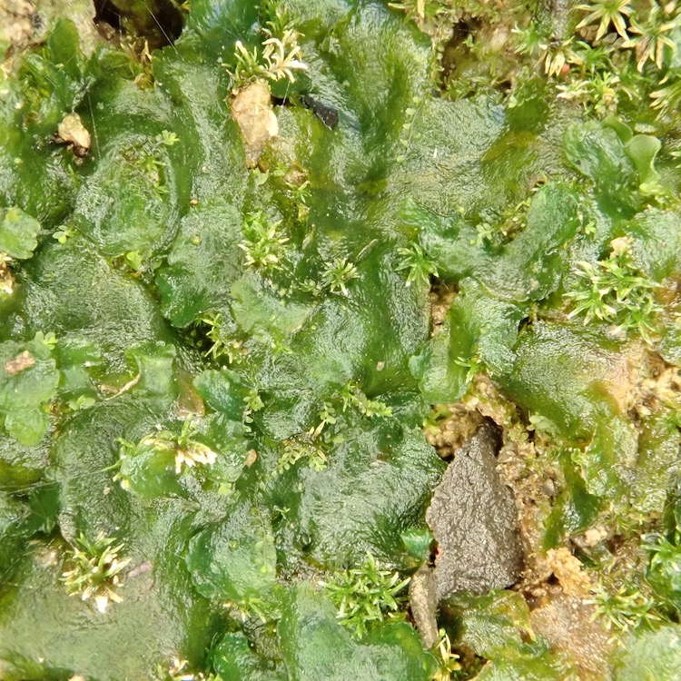 Scroll down for photos illustrating habitat, form, antheridial pits, Nostoc colonies, chloroplasts and spores (click to enlarge).