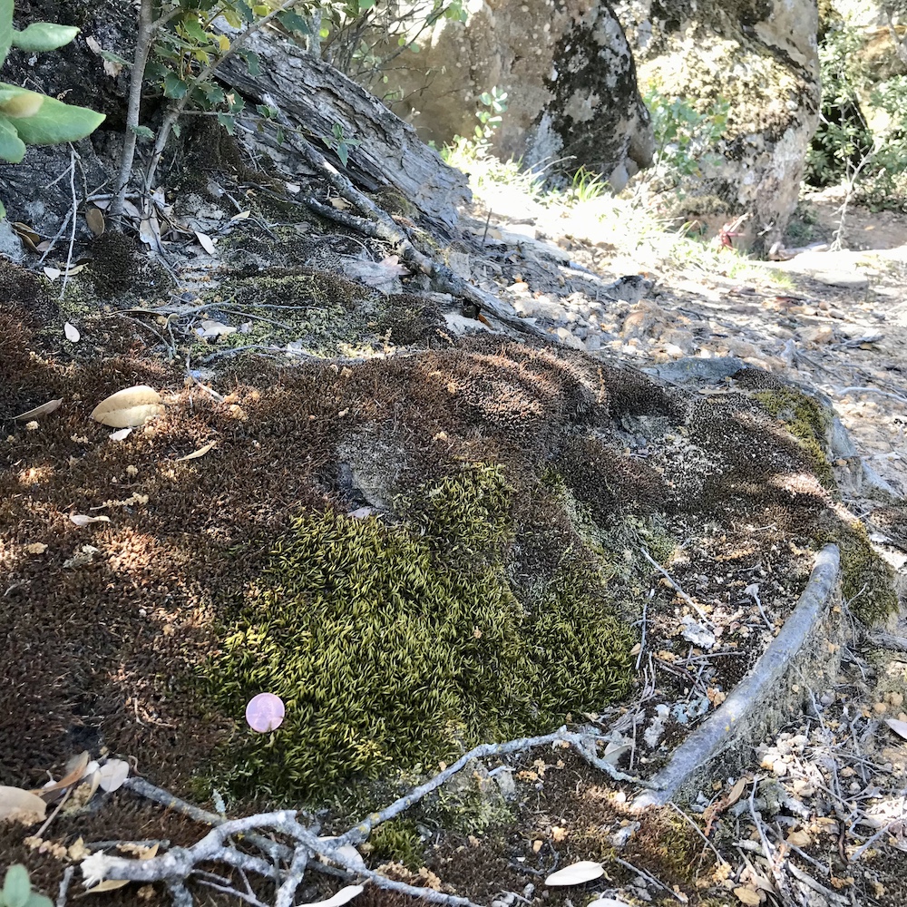 Anacolia menziesii dry on soil along trail. CC BY-NC Amanda Heinrich