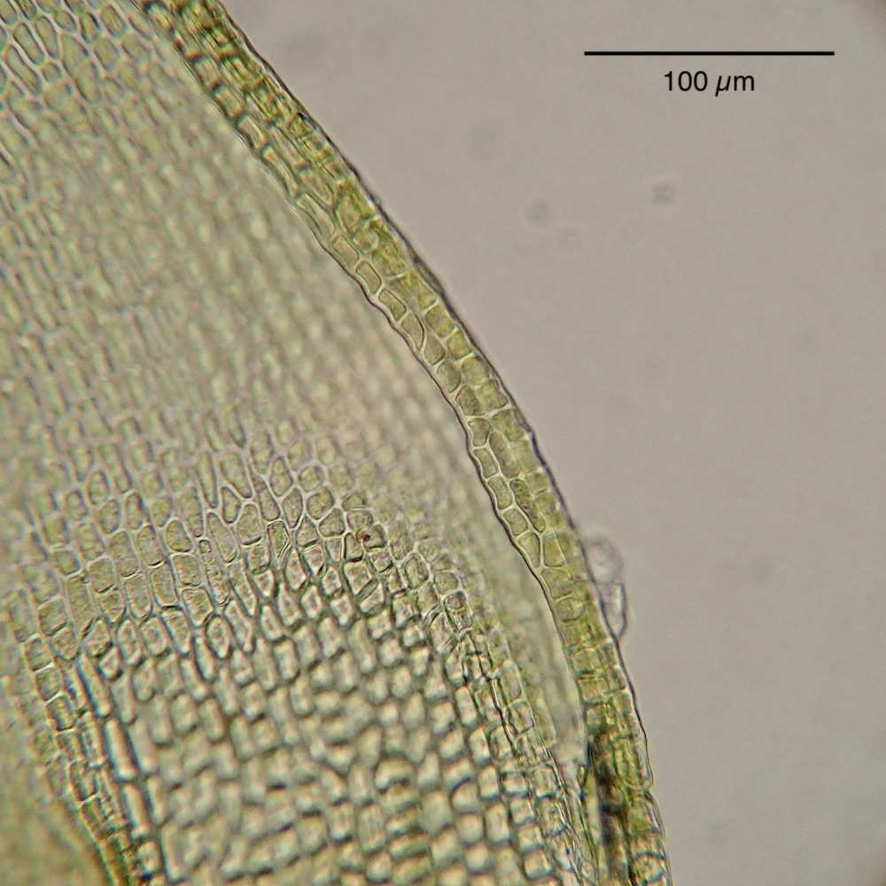 Anacolia menziesii leaf margin is recurved in the lower half. (CAH #957, 400x) CC BY-NC Amanda Heinrich