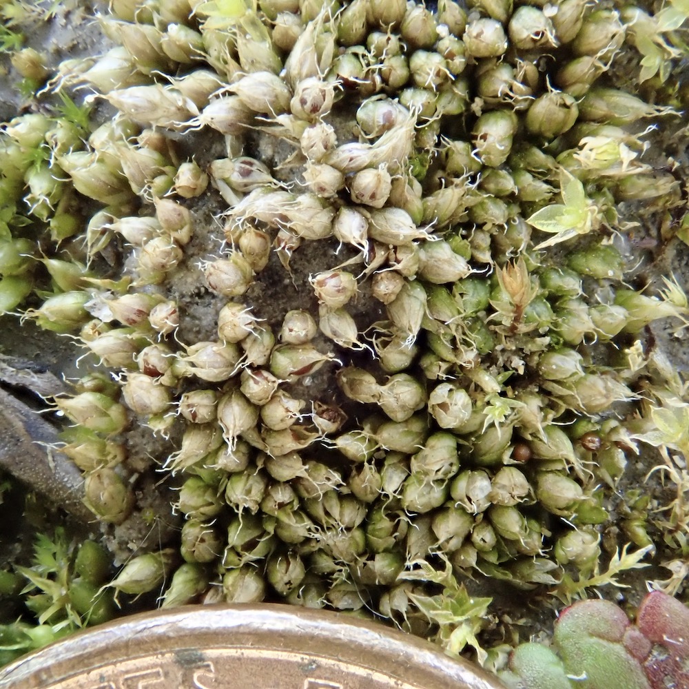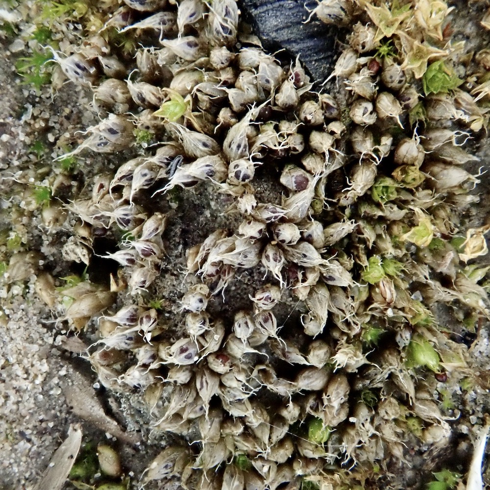 Stegonia hyalinotricha cluster of budlike plants, still green in early February. CC BY-NC Amanda Heinrich