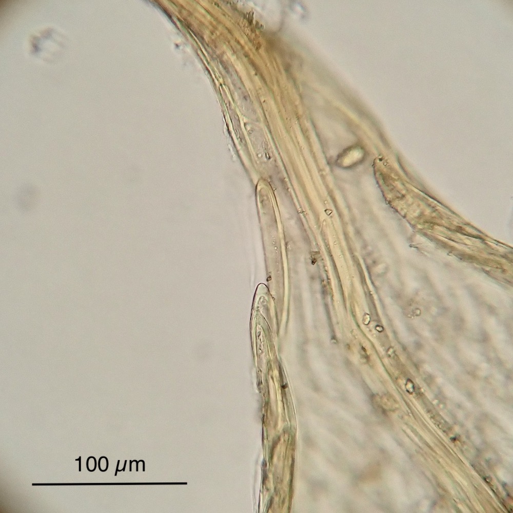 Stegonia hyalinotricha leaf, 100x. CC BY-NC Amanda Heinrich