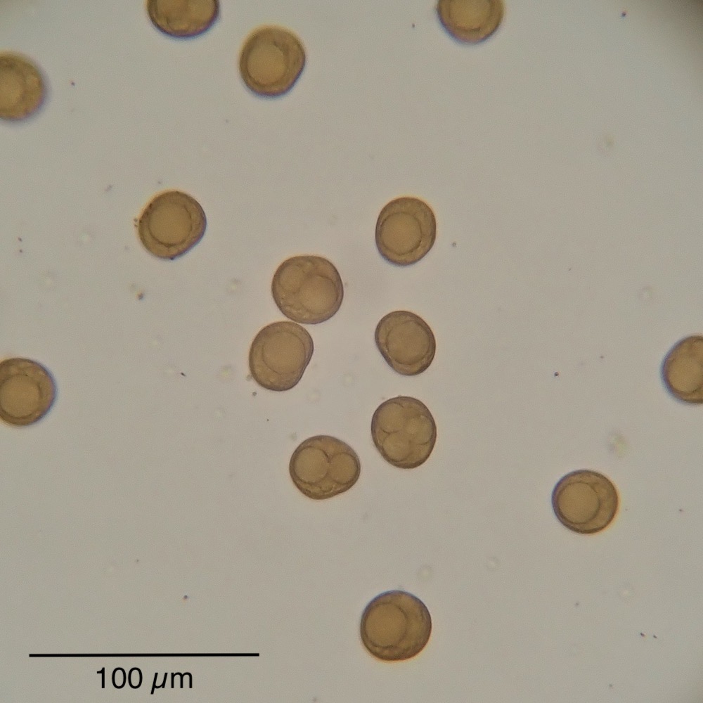 Stegonia hyalinotricha spores in early March, 400x. CC BY-NC Amanda Heinrich